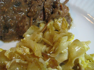 Add eggs. (I generally use two for a larger amount of noodles.)